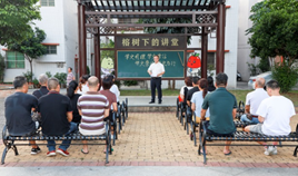在顺天里144号红色教育基地“榕树下的讲堂”,支部书记杨望贤带领江海区残联党支部全体党员深入学习习近平总书记《论中国共产党历史》之“革命精神是党和国家的宝贵财富”,重点宣讲中国共产党领导中国人民进行革命、建设和改革的丰功伟绩,展望新时代中国的美好前景,要求支部党员铭记党的奋斗历程,担当好历史使命,从党的奋斗历史中汲取前进力量。精彩内容吸引现场10多名热心群众一同聆听。
