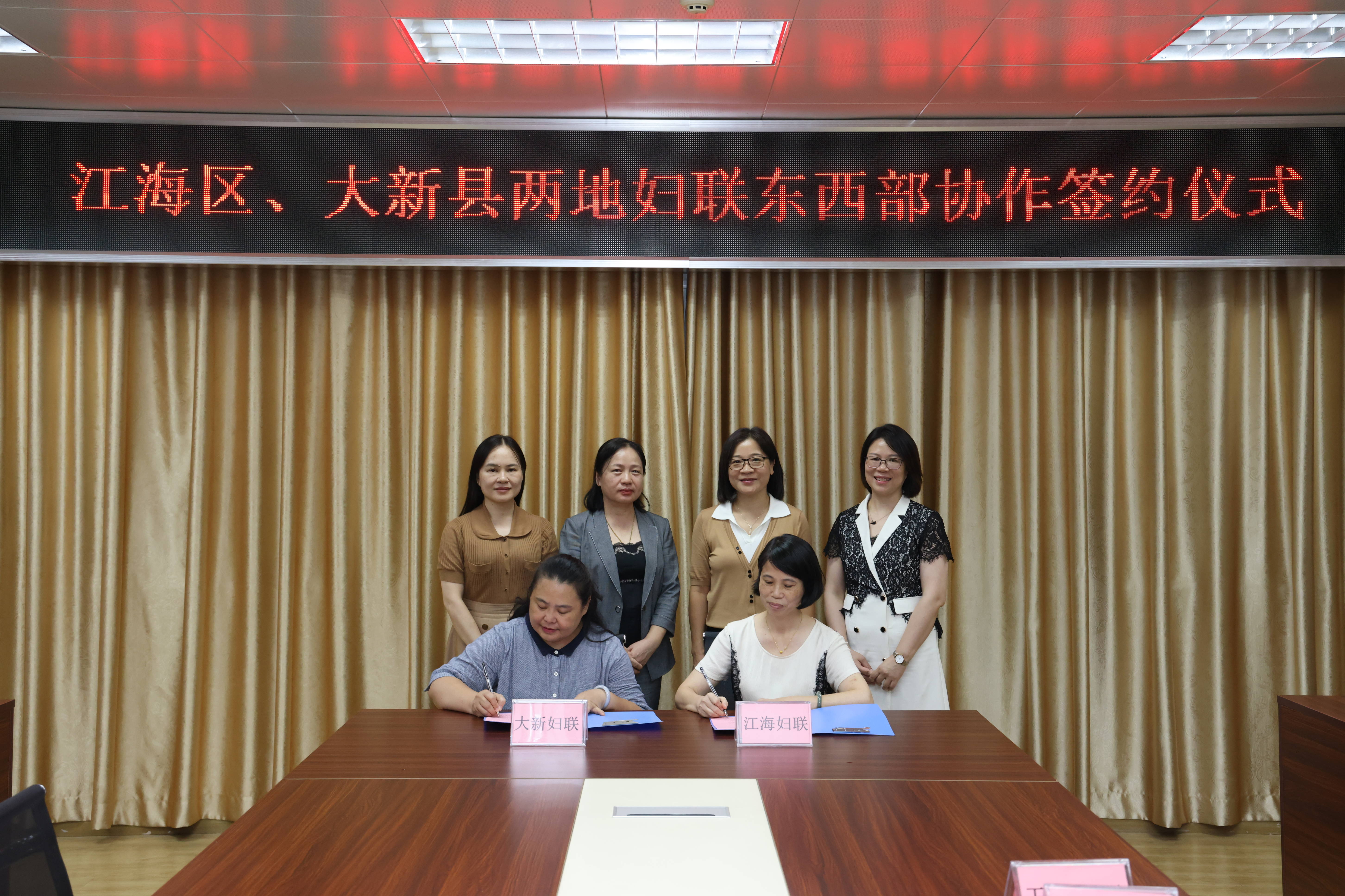 在交流对接活动中,江门市江海区妇联与对口帮扶县崇左市大新县妇联就建立常态化沟通交流协作机制、搭建两地妇女协作平台、实施妇女发展提升协作计划等方面共同签订了东西部协作框架协议,推动两地妇女在思想引领、创业创新、产业合作、互学交流等方面实现优势互补、良性互动,凝聚区域发展合力。