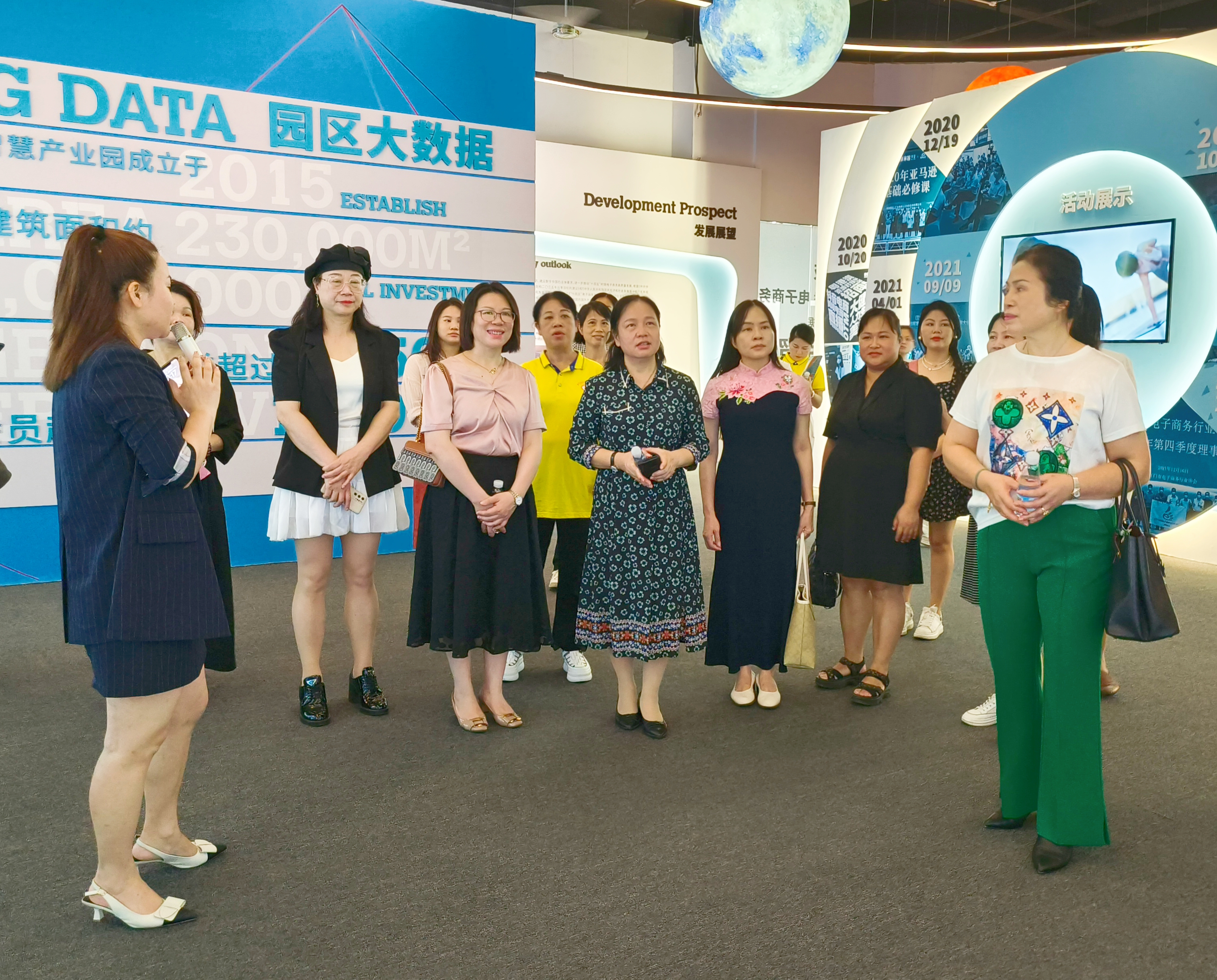 交流组一行走进巾帼创业创新基地成果展示厅、产业园侨梦苑文创汇、青年之家、众创空间等,深入了解粤湾云谷智慧产业园整体规划、企业孵化和巾帼电商创业运营等情况。目前,粤湾云谷共引进87个项目(企业)入驻,带动创新创业人数达1000人;女性创业项目20余家,带动女性创业人数350人,基地通过持续开展各类创新创业活动,上半年举办各类创新创业活动50余场,女性沙龙10余场,举办活动获得创业者一致好评,累计服务人次达1000以上,致力于打造提供女性创新创业平台。