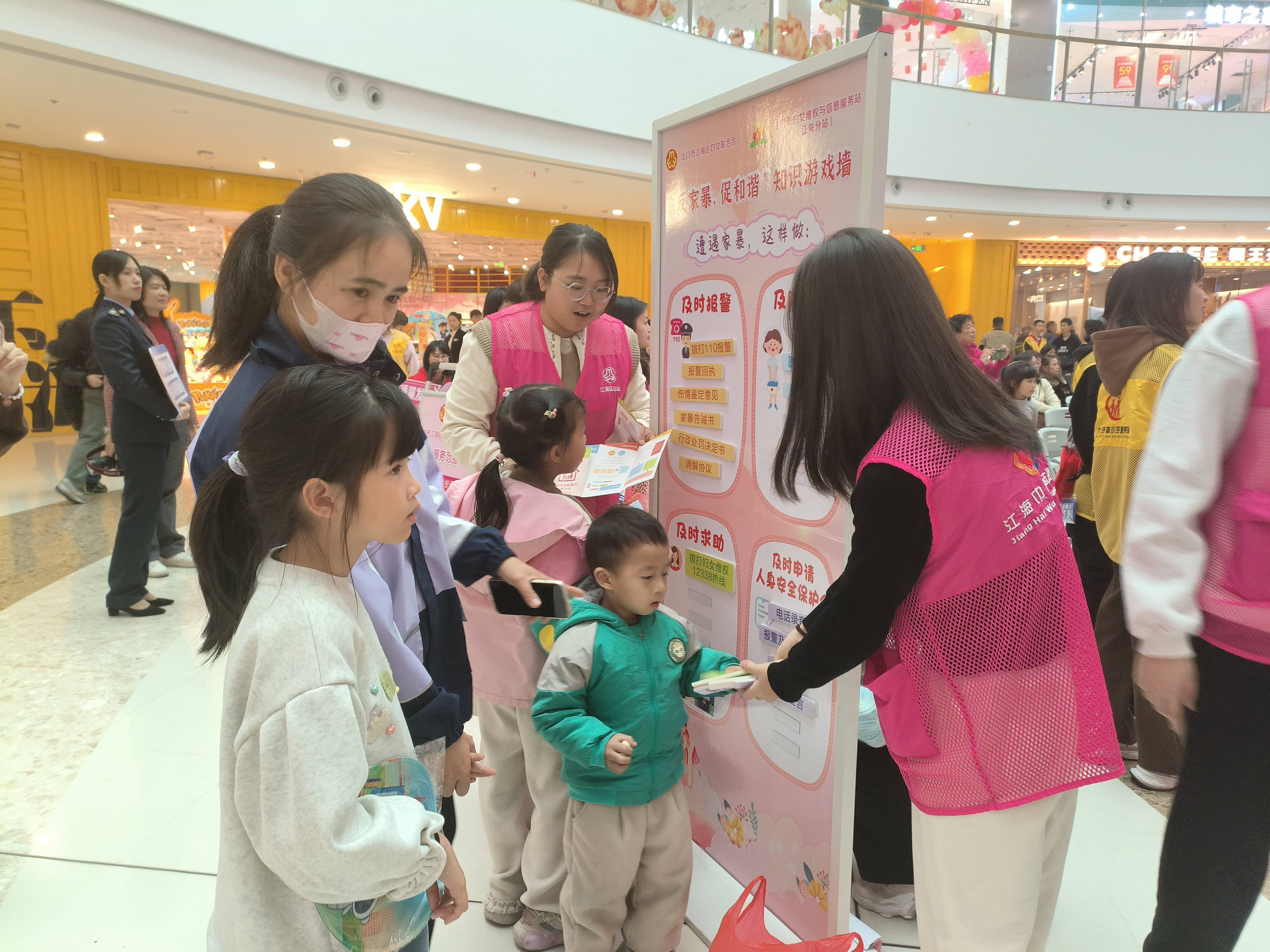 为学习贯彻党的二十届三中全会精神和习近平法治思想,进一步保障妇女儿童合法权益,将法治宣传和维权服务送到广大妇女群众身边,不断推进平安家庭、平安江海建设,3月8日下午,江海区妇联在江海万达广场举办“家和美”普法维权法治宣传文艺表演活动,通过普法宣讲、健康服务、知识问答等形式,为江海区居民群众送上法治“春风”与暖心关怀,进一步营造尊重妇女、关爱家庭、共建和谐社会的良好氛围。江海区人民政府副区长袁美兰,江海区妇联主席杜开红,区、街道妇联有关领导,区直妇工委会代表、各级妇联干部、先进妇女典型代表参加了本次活动,现场吸引300多名群众参加。
