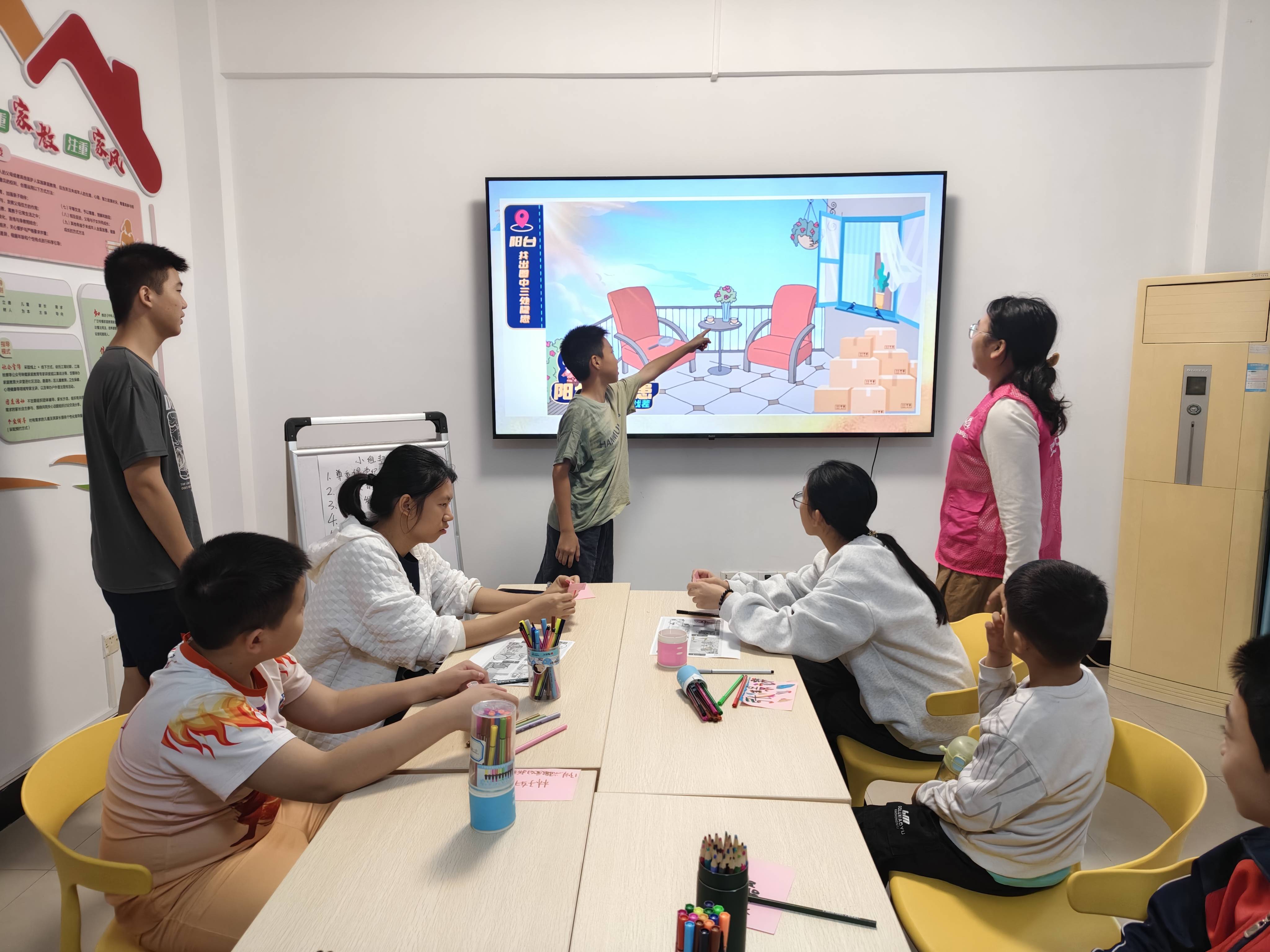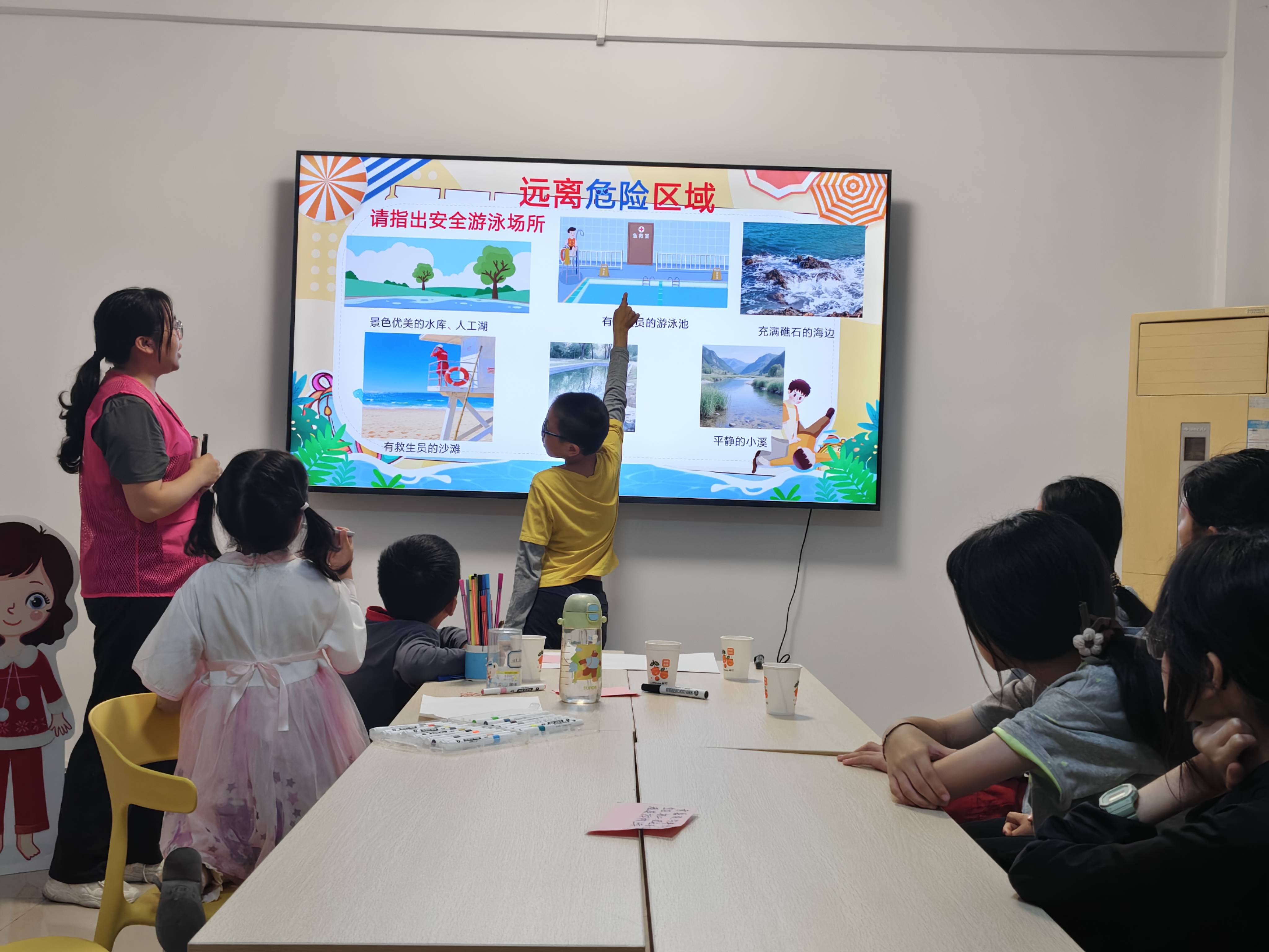 在“我安全,我健康,我快乐”的环节中,工作人员通过游戏互动和视频参考等形式,让组员学习防溺水、禁毒、交通安全等与未成年人息息相关的安全知识。
