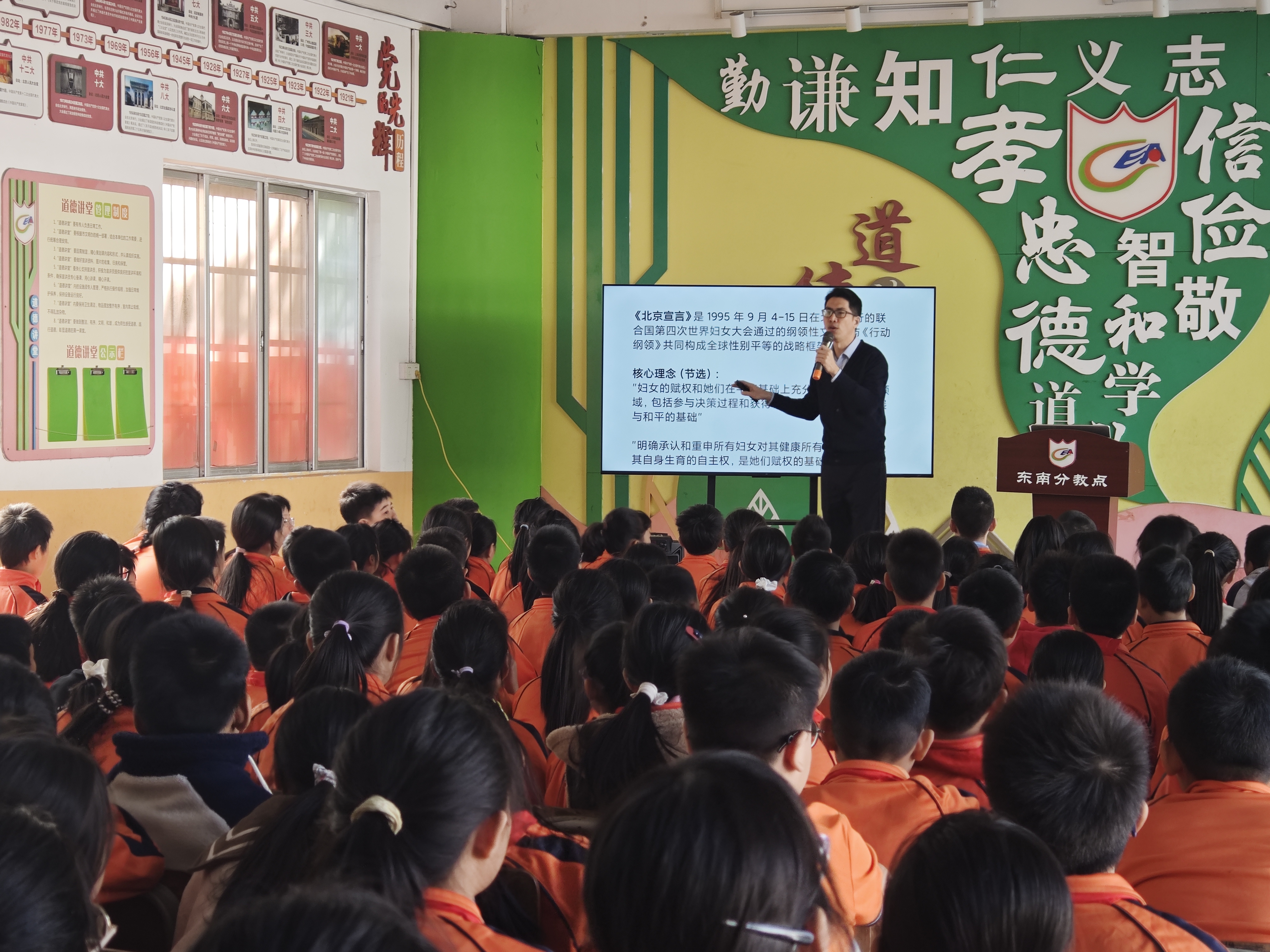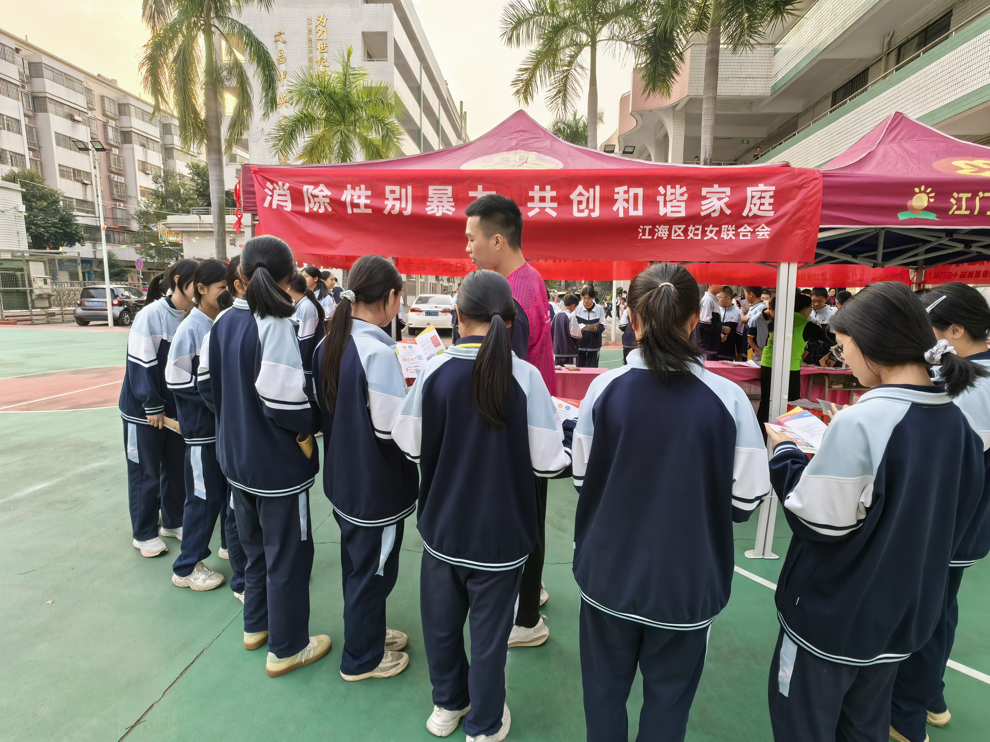 为贯彻落实“消除性别暴力16日行动”,深化未成年人法治教育,筑牢校园安全防护网,近日,江门市妇联联合江海区妇联在文昌中英文学校礼乐总校和东南分教点开展“零容忍性别暴力,共护校园晴空”法律教育课暨普法宣传活动,为400余名师生送上了一堂生动的法治教育课,进一步提升未成年人对性别暴力的认知与防范能力。