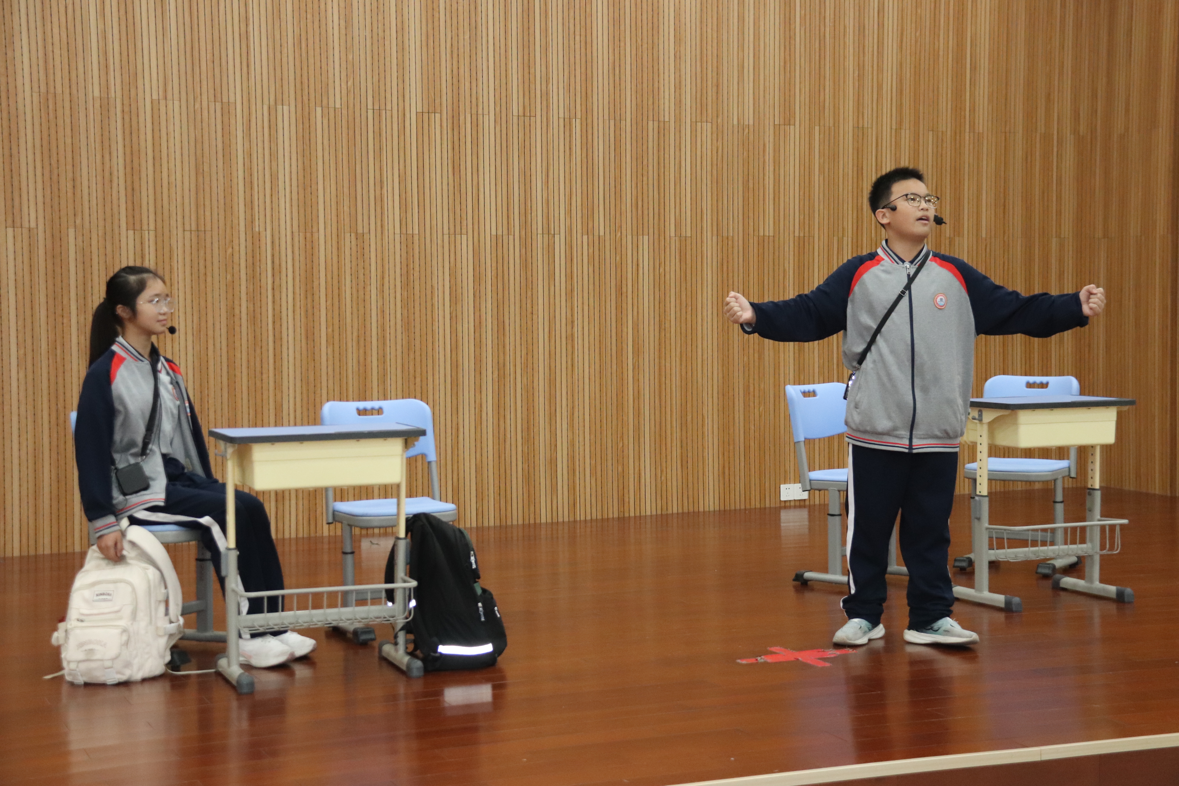 本次活动围绕“远离网络沉迷”主题,推出原创绘本剧《傻瓜竟是我自己》。该剧以青少年真实生活为背景,巧妙融入了“被设计的‘玩家’”与“清醒的‘破壁人’”这一角色转变主线,通过生动紧凑的情节编排与沉浸式的舞台表现,引导同学们思考网络与自我的关系,学会辨识虚拟诱惑,自觉养成理性上网、健康生活的良好习惯。演出不仅传递了网络自护的核心意识,更深化了师生对未成年人保护工作的价值认同。演员们表演真挚、刻画入微,将角色的成长轨迹展现得真实动人,赢得现场阵阵掌声与情感共鸣。