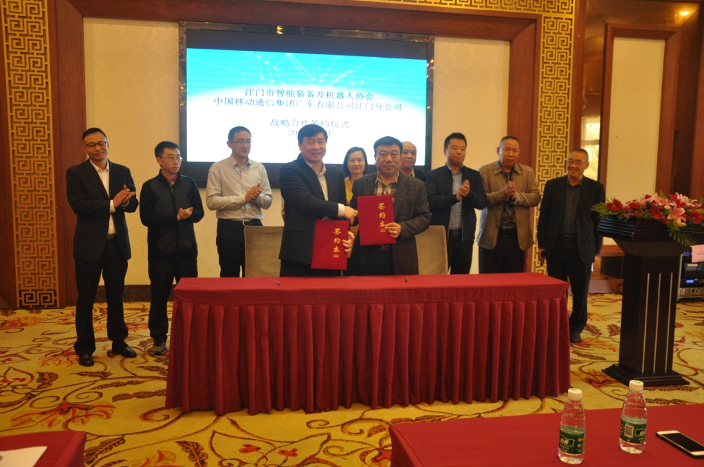 1月11日下午,“江门市智能装备及机器人产业前沿报告会及高端沙龙”在江门圣龙大酒家隆重举行,同时举办了江门市智能装备及机器人协会2018年工作总结暨2019年迎春茶话会。市政协副主席费伟东、市工业和信息化局局长余中华、市科协书记邹敦华、江海区工商联前党组书记吴殿晖等领导和嘉宾出席了会议,约80多名会员参加了会议。