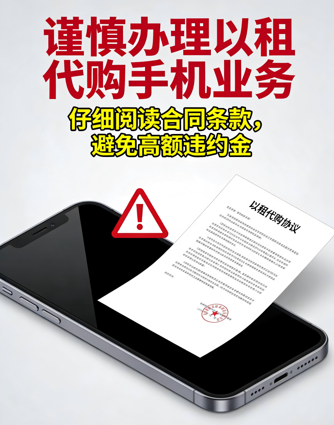 “以租代购”手机,只要是双方真实意思表示,内容不违反法律强制性规定,其作为一种合同模式本身是合法的。但在具体实际中,部分商家以分期付款的话术诱导消费者陷入高昂费用、不公平条款的“租机贷”,以“合法外衣”逃避监管,下面为您一一拆穿: