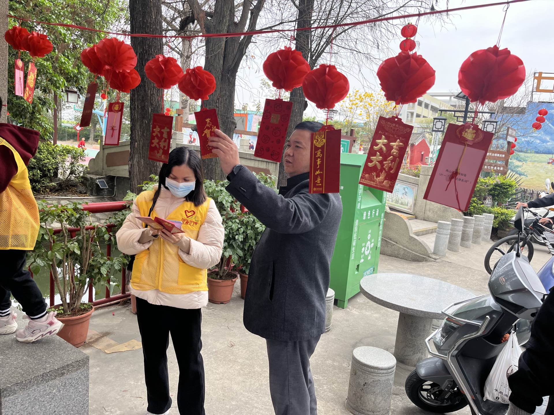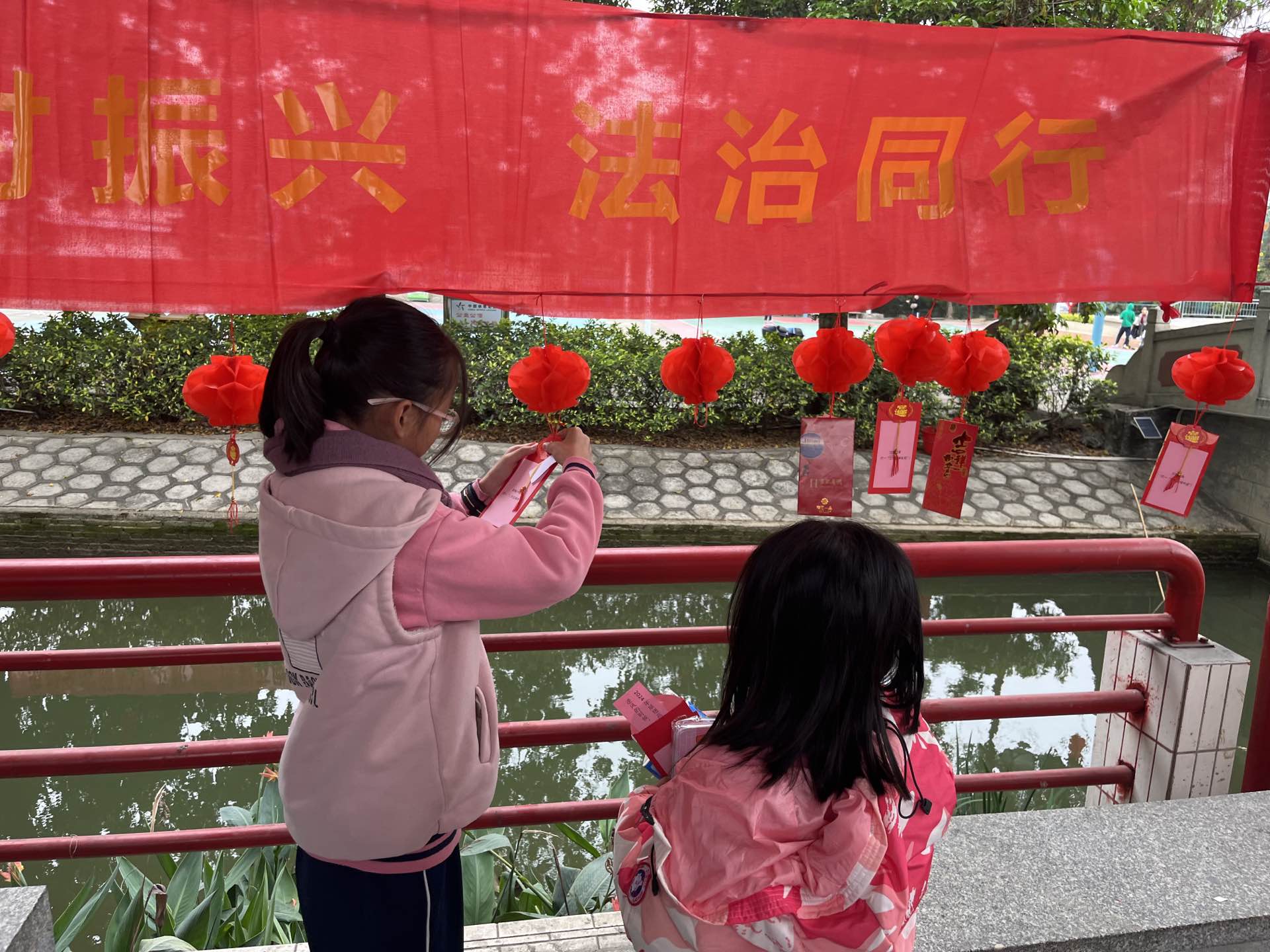 活动现场,主办方精心制作了百个融法治与传统文化为一体的灯谜灯笼,分批次挂满整个凉亭,吸引广大村民及游客纷纷驻足观看、争相竞猜。为了能猜对谜底,大家热情高涨,有的彼此相互交流,有的从手机查找答案,还有的拨打电话向亲朋好友求教,现场气氛热烈。“猜灯谜特别好玩,我和姐姐合作猜对了3个!”“猜法治谜语,既有趣味,还能学到法律知识,这个元宵节过得特别有意义。”参加活动的“大手牵小手”志愿服务队的小朋友兴奋地说。