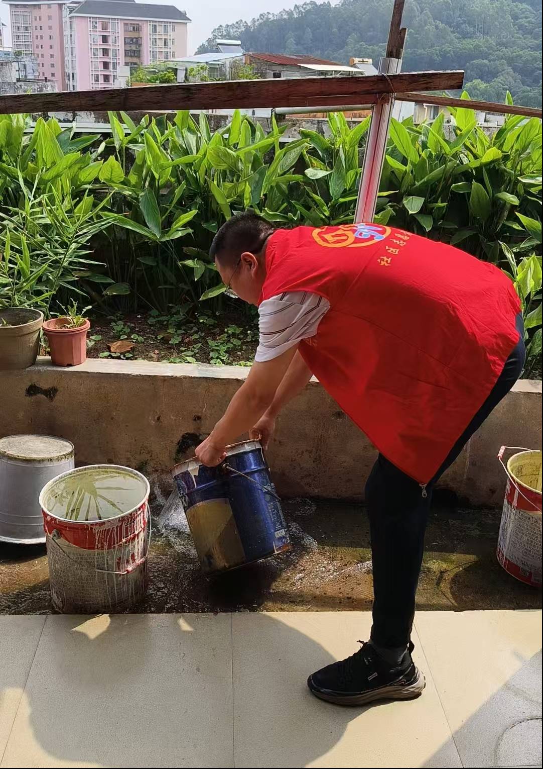 基孔肯雅热靠蚊媒传播,清理蚊虫滋生地就是掐断疫情“咽喉”。区人大代表、文苑社区书记方春华带头扛起这份责任:她领着社区干部、党员志愿者挨家挨户“扫雷”,看到居民院角的闲置水桶,立刻动手倒掉积水;发现绿化带里的枯枝落叶,带头弯腰清扫。“翻盘倒罐不能等,积水就是‘定时炸弹’。”她的行动也带动着越来越多居民加入清理队伍。