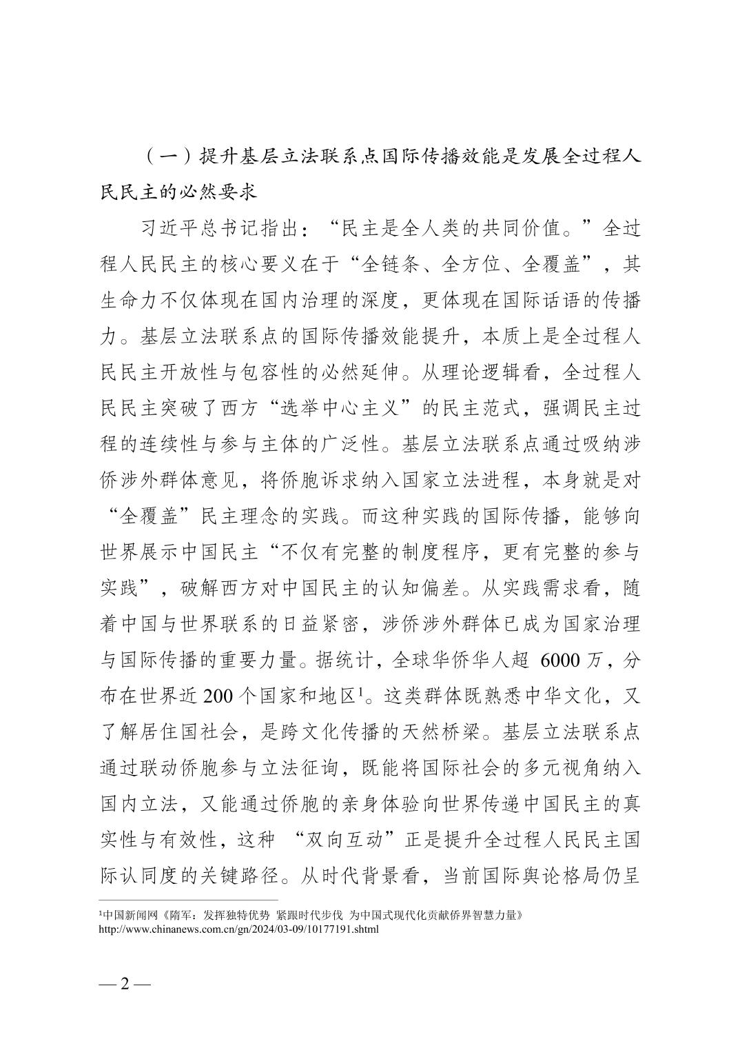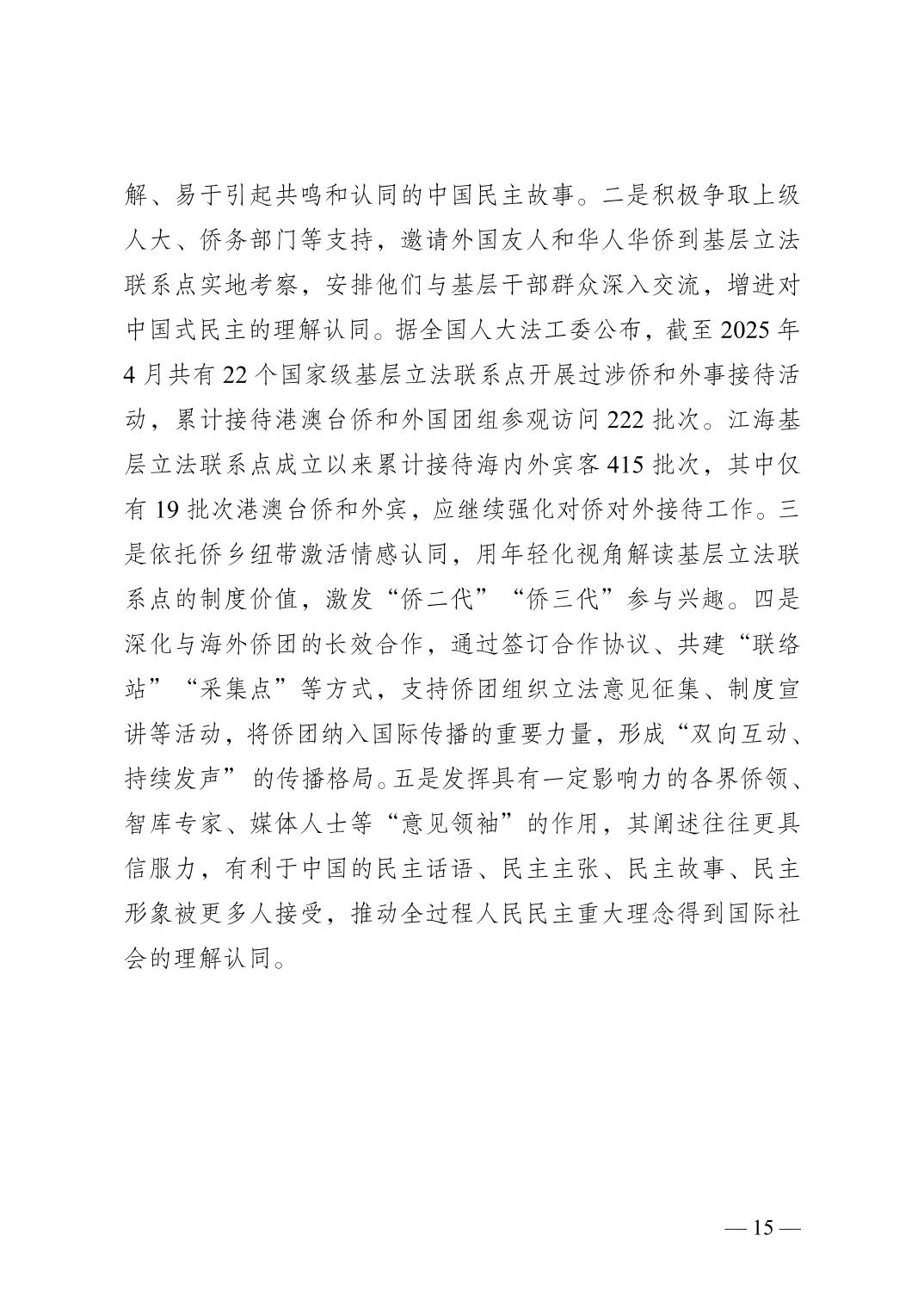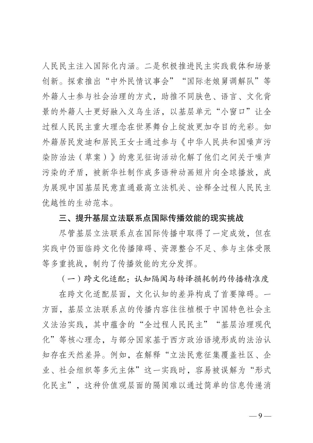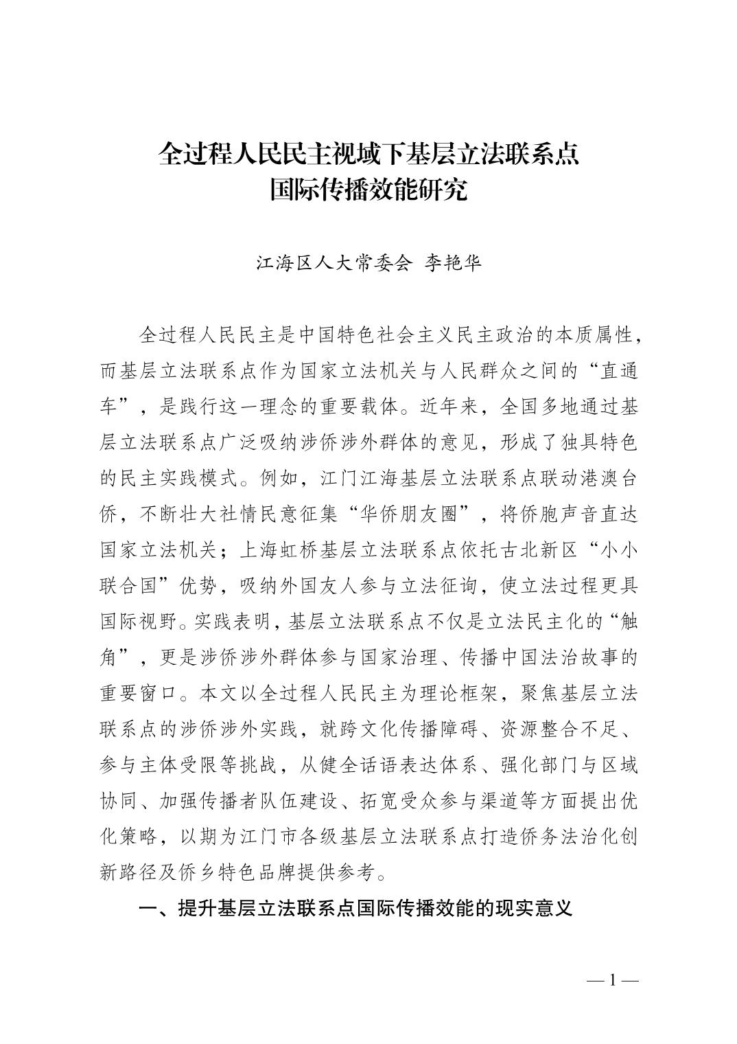 全过程人民民主视域下基层立法联系点国际传播效能研究(作者:李艳华)