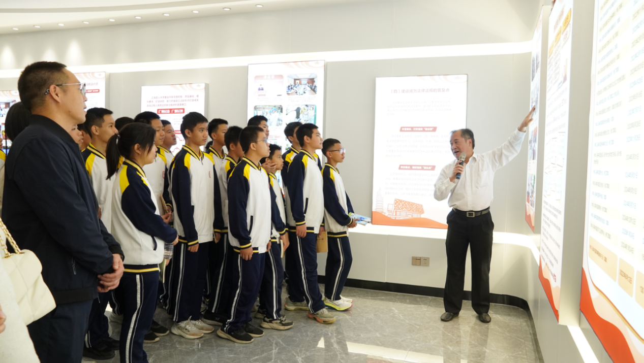 活动现场,学生们还参观了法治广场、全国人大常委会法工委江海基层立法联系点及江海人大代表活动中心。通过观看展览、听取讲解,深入了解了宪法的发展历程、基本原则以及立法联系点的工作机制。其间,江海区人大常委会和区教育局特别安排了3名工作人员和4名思政课教师进行现场讲解,引导学生们将宪法知识内化于心、外化于行。