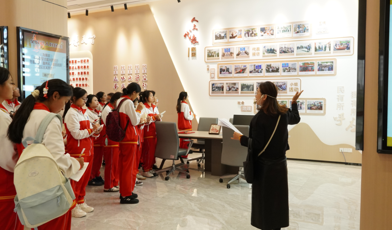 活动现场,学生们还参观了法治广场、全国人大常委会法工委江海基层立法联系点及江海人大代表活动中心。通过观看展览、听取讲解,深入了解了宪法的发展历程、基本原则以及立法联系点的工作机制。其间,江海区人大常委会和区教育局特别安排了3名工作人员和4名思政课教师进行现场讲解,引导学生们将宪法知识内化于心、外化于行。