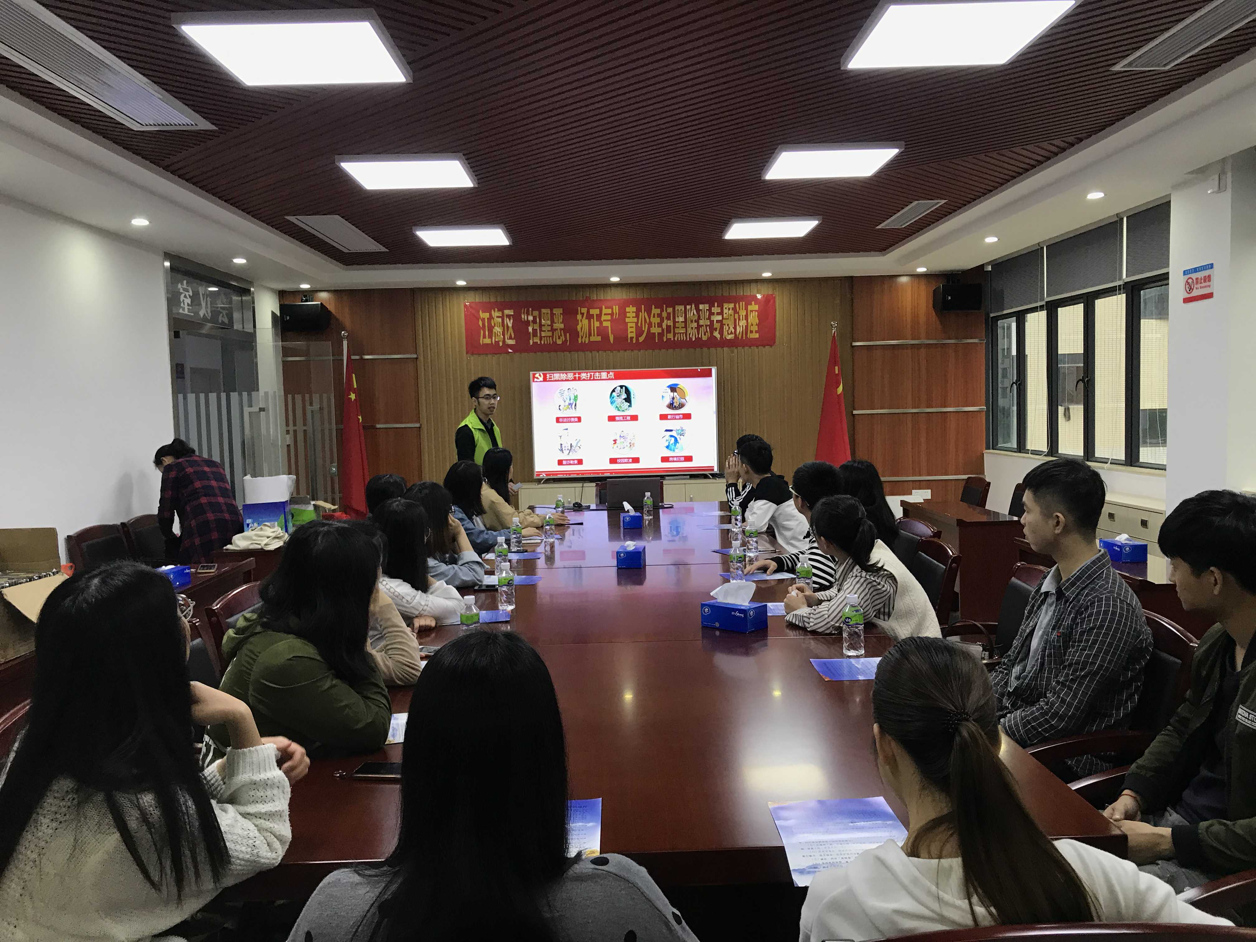 为进一步加强扫黑除恶专项斗争的宣传力度,引导青少年辨别身边的黑恶势力,做到及时举报,维护社会稳定,构建和谐社会,同善社工中心将面向辖区内青少年、项目服务对象于4月9日在直冲村委会二楼会议室开展“扫黑恶,扬正气”扫黑除恶专题讲座。
