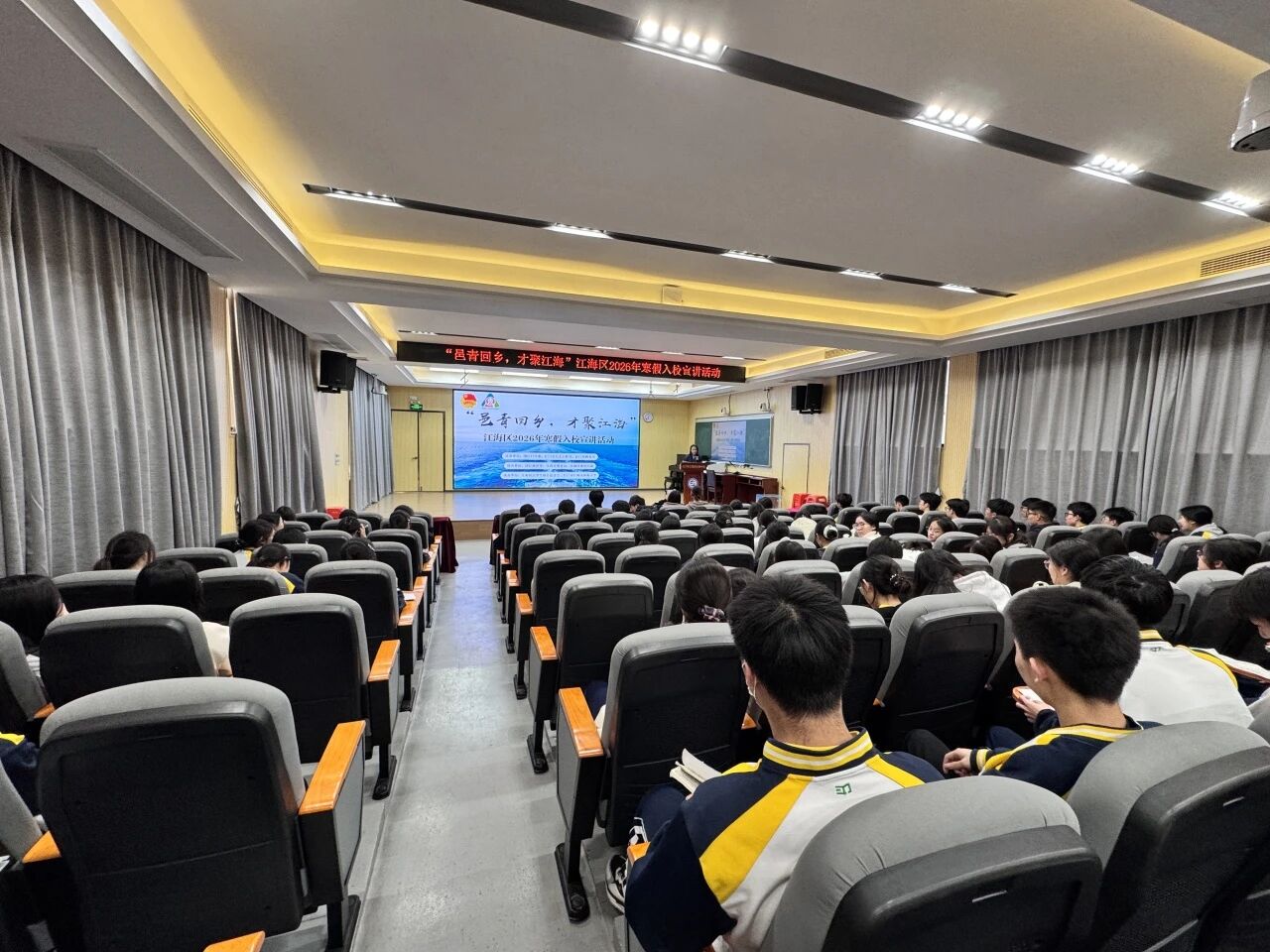 为扎实推进人才倍增工程,营造“家乡广纳英才,英才反哺家乡”的良好氛围,1月28日,团区委联合区委组织部、区教育局、区大学生成长促进会在外海中学举办2026年“邑青回乡,才聚江海”寒假入校宣讲活动,江海籍优秀大学生与200多名外海中学高三学子齐聚一堂,以青春之声传递成长力量,用榜样之光点亮少年追梦之路。