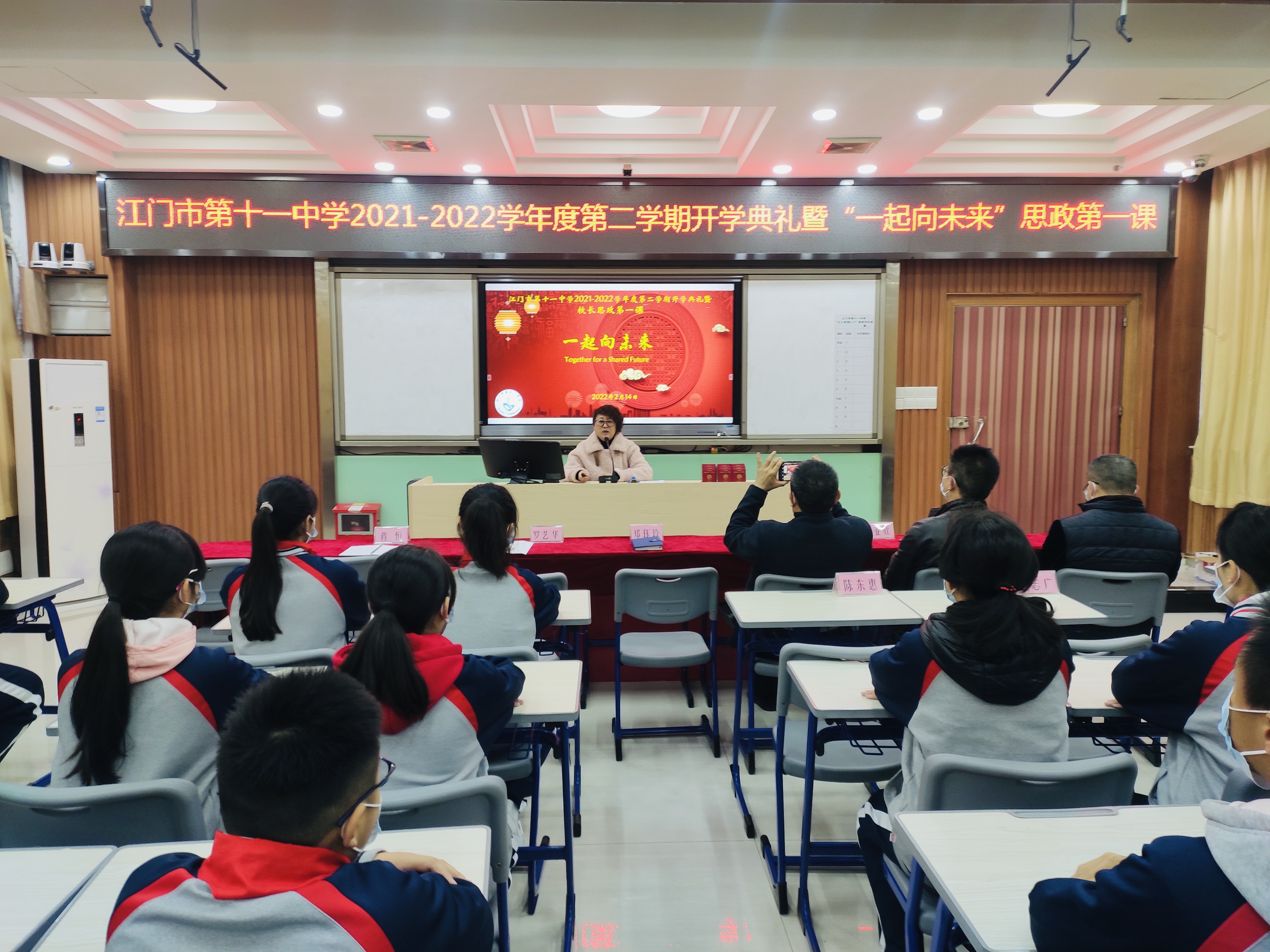 奋进新学期,一起向未来。2022年2月14日上午,江门市第十一中学全体师生带着虎虎生威的朝气,怀着如虎添翼的希望隆重举行了2022年春季开学典礼暨“一起向未来”思政第一课。