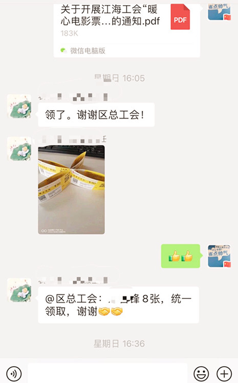 本次活动区总采购5000张新年期间的电影票供留江海过年的职工抢。职工通过登录“江门智慧工会”系统参与抢票活动,成功抢票的职工可到指定电影院兑换电影票一张。开抢活动开展不到两天,5000张电影票基本被职工们抢完了。