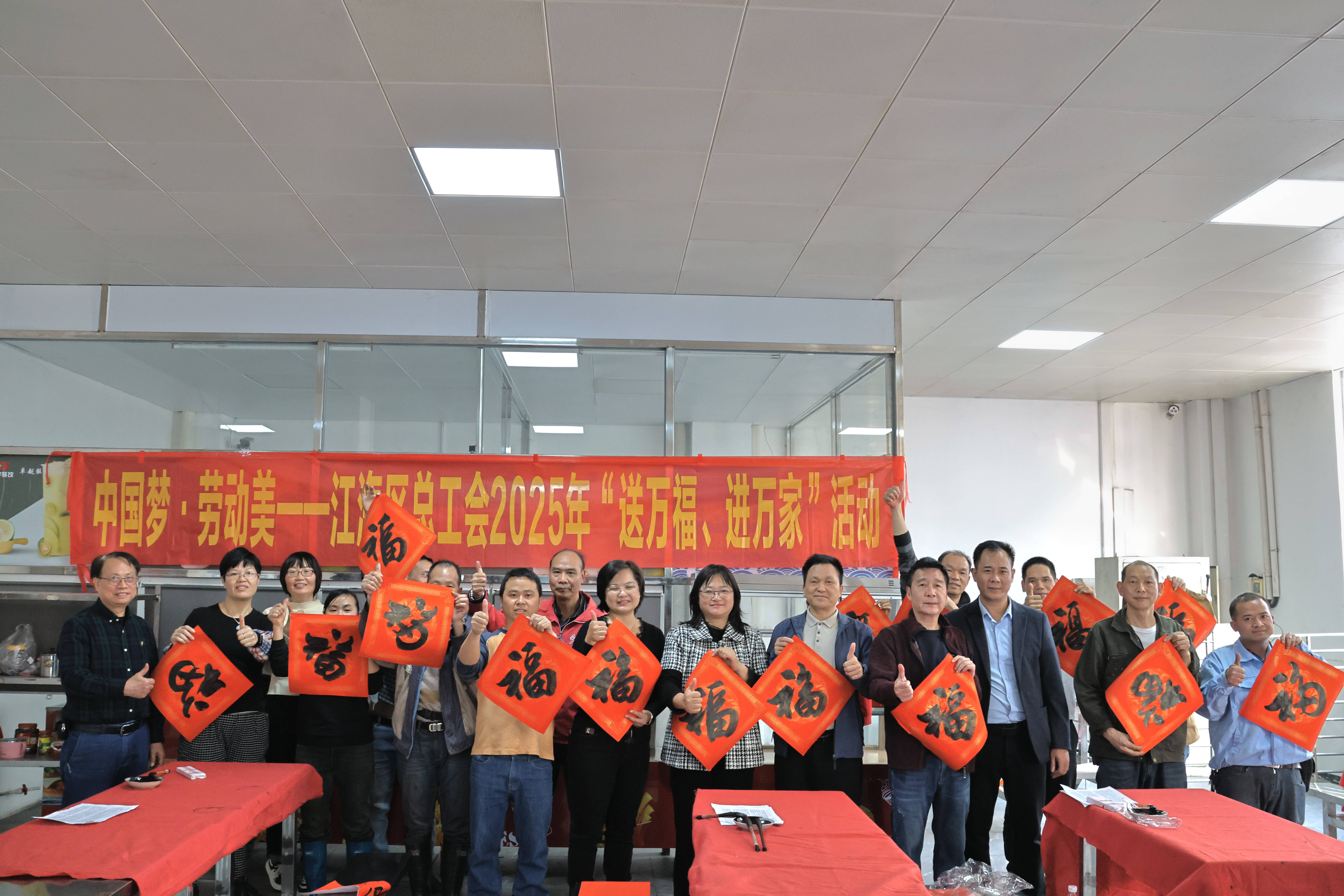 在新春佳节来临之际,为传承中华民族传统文化,传递工会的温暖与祝福,日前,江海区总工会深入企业,为一诠科技、江门江益磁材等公司开展2025年“送万福 进万家”送春联活动。江海区人大常委会副主任、区总工会主席陈颖玲,区总工会常务副主席马锦德、副主席孙建明参加了活动。