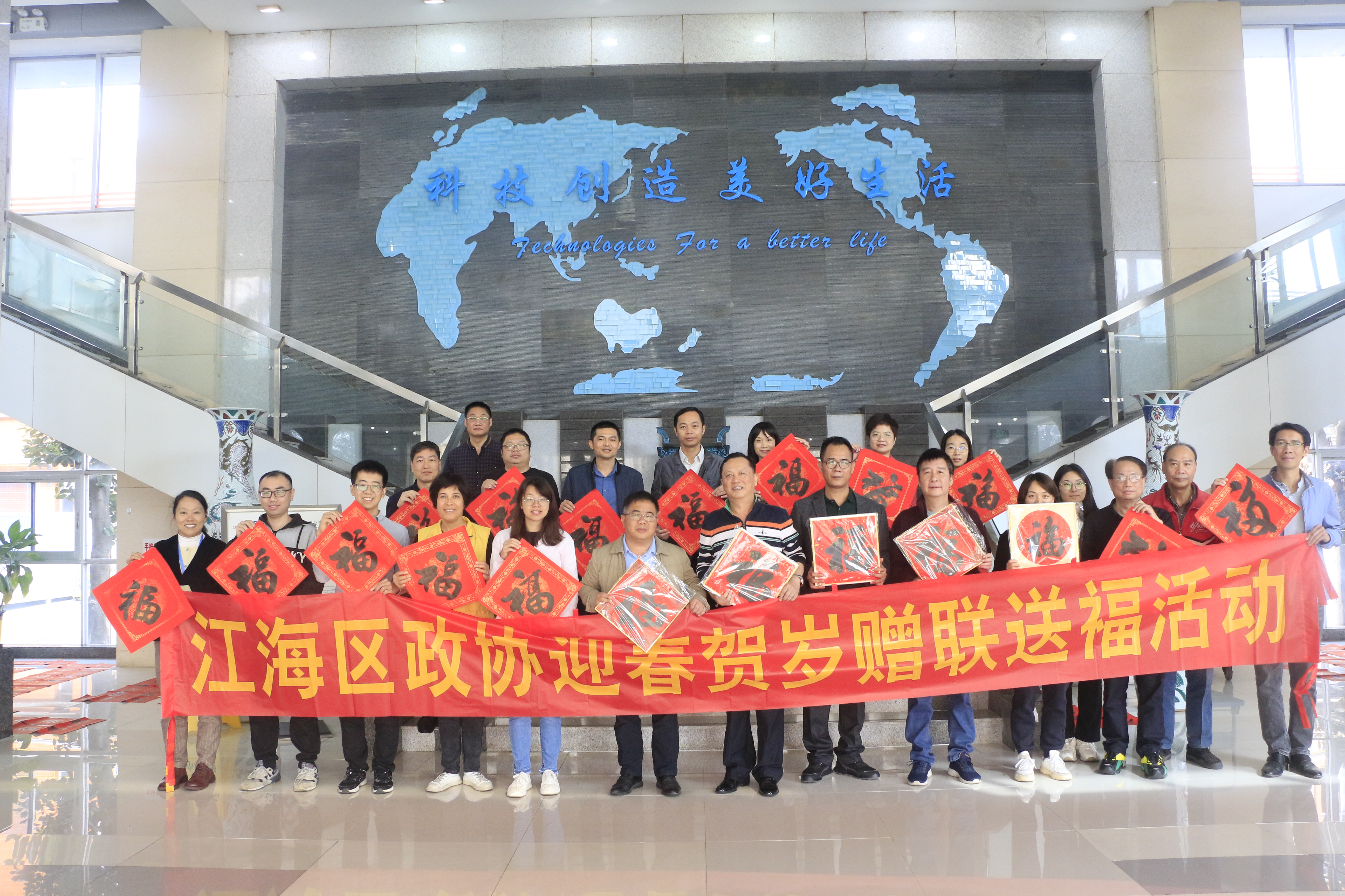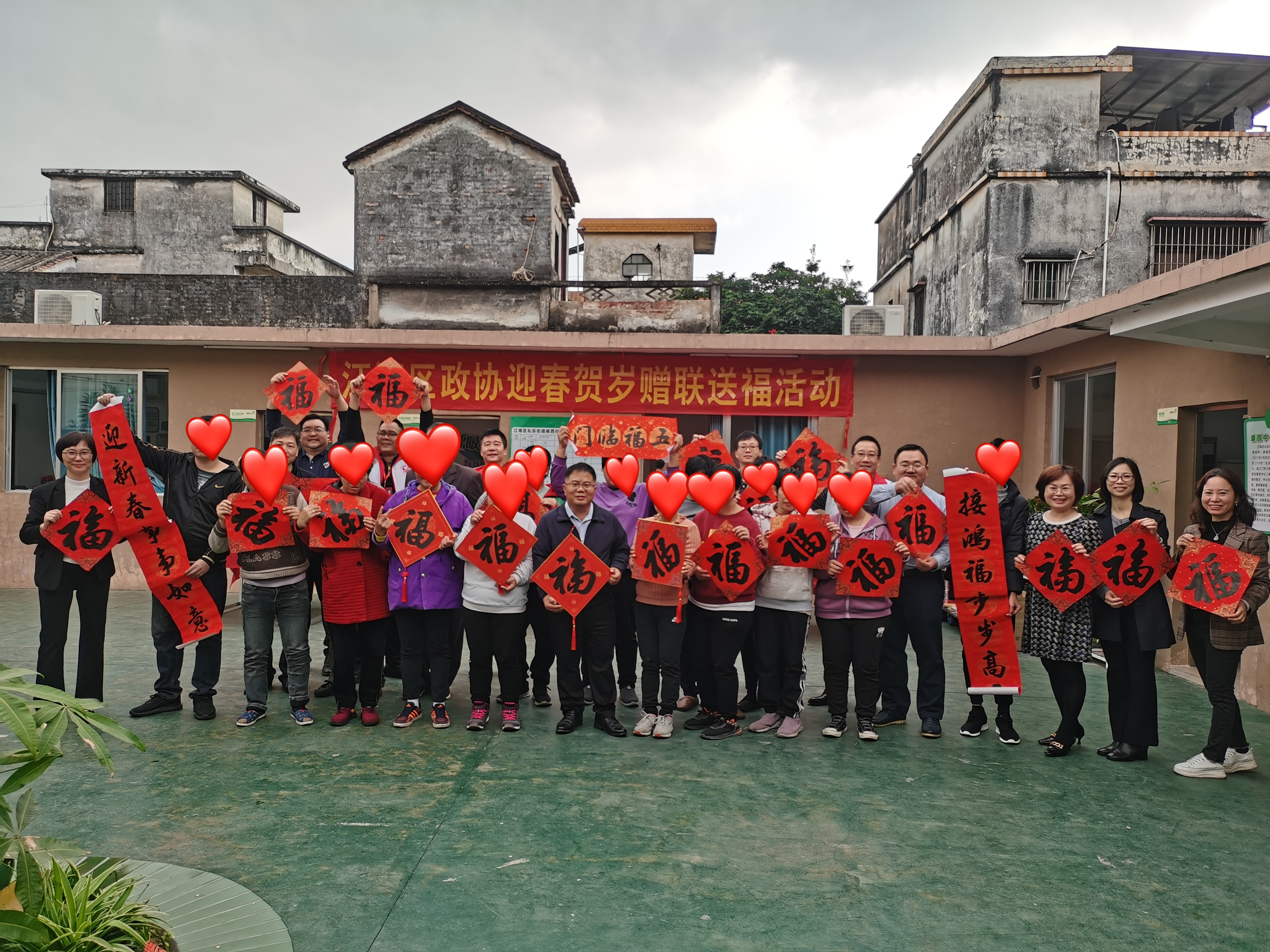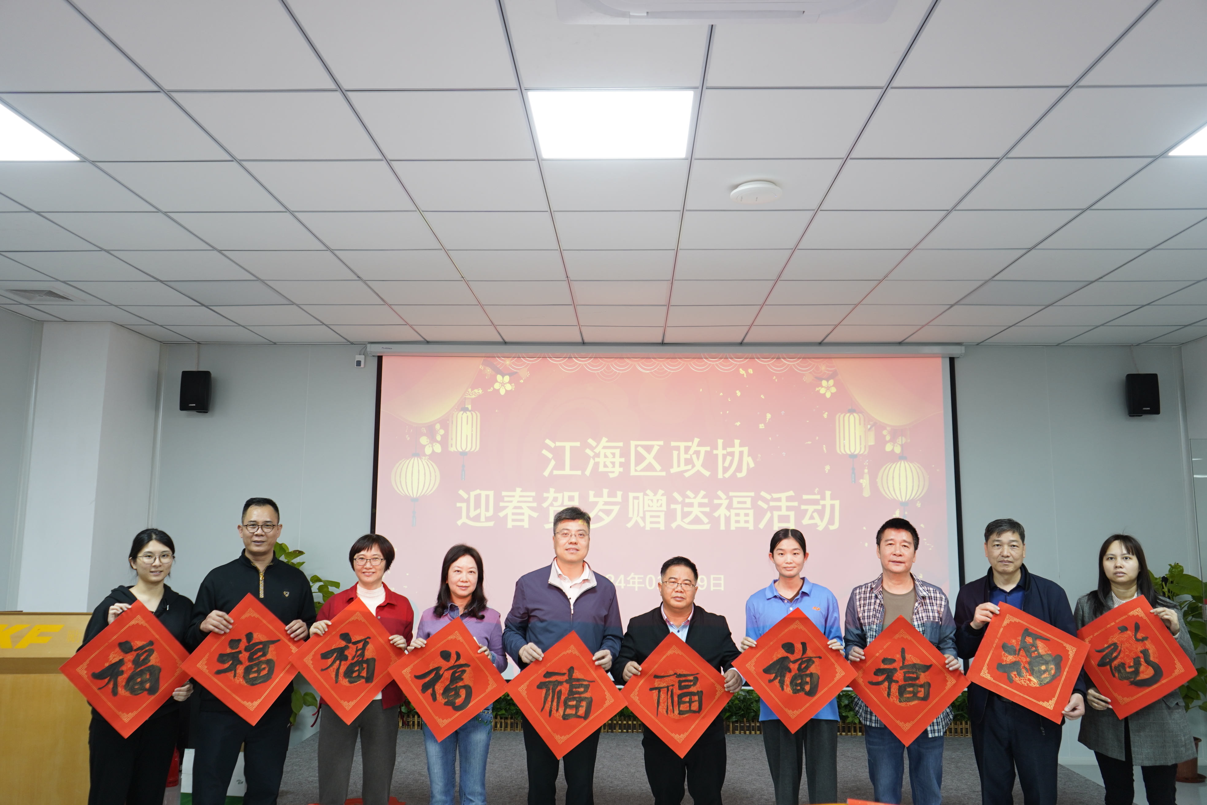 即席写“福”、其乐融融。江海区政协赠联送福活动走进了礼乐威西社区康园中心、江南江翠社区康园中心,以及励福(江门)环保科技股份有限公司、江门市长优实业有限公司。活动现场,书法家和热爱书法的政协委员们挥毫泼墨,美好的新春祝愿凝于笔端,跃然纸上,尽展书法艺术魅力,吸引了众多群众、职工参与。大家沉浸在墨香中,或静观书法家挥毫,或积极执笔书写,或品评春联寓意,或细细挑选对联,现场一片欢声笑语,暖意融融。